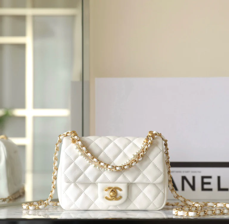 Chan New 24p Pearl chain flap bag